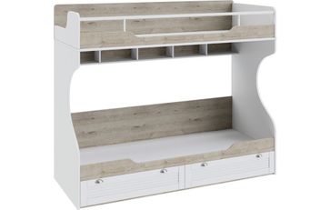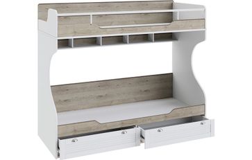 Кровать двухъярусная Ривьера ТД-241.11.01 — молодежная кровать с комфортными спальными местами. Кровать оборудована двумя бельевыми ящикам под основанием нижнего спального места и полками для книг в секции, расположенной под верхним спальным местом. Кровать изготовлена из ЛДСП, Дуб Ривьера. Основания спальных мест — настил ДСП, верхнее спальное место оборудовано бортиком безопасности. Матрасы приобретаются дополнительно. Кровать может дополнительно комплектоваться металлической или приставной лестницей. None Есть доставка.