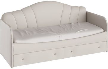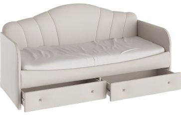 Кровать Сабрина ТД-307.12.02 — детская мебель, выполненная в стиле Неоклассицизма. Кровать изготовлена из ЛДСП (корпус) и МДФ (фасад), кромки обработаны ПВХ, ручки металлические в цвете Патинированный никель. Основание спального места — настил ДСП. Кровать укомплектована мягкой спинкой с прокладкой ППУ и обивкой тканью Кашемир. Кровать оборудована двумя выдвижными ящиками. Матрас высотой не более 130 мм приобретается дополнительно. None Есть доставка.