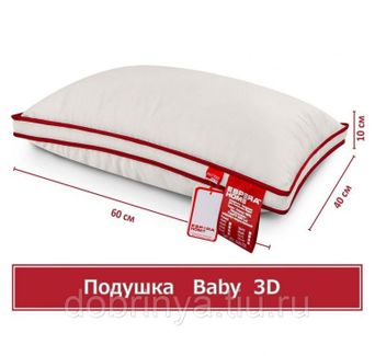 Подушка «Baby»-3D является ярким образцом удачного сочетания традиционных представлений и новаторских идей об этом элементе постельного белья. Эргономичная ортопедическая подушка «Baby»-3D 40см х 60см гарантирует правильное положение головки ребенка и шейного отдела во время сна, благодаря чему обеспечивается полное расслабление мышц шеи и глубокий сон.
