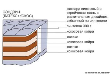 - Беспружинный матрац Сендвич (латекс + кокос) 1600х2000 по выгодной цене 21 600 р. руб.;