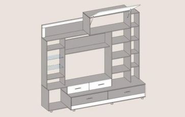 Простой дизайн, предельная функциональность и вместительность мебели при небольшом размере — все создано для того, чтобы стенка соответствовала своим функциям, делала вашу гостиную уютной и просторной. В состав входят необходимые и привычные компоненты: