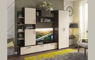 Гостиная Денвер — стенка с большим количеством полок, часть из которых прикрыта дверцами, четырьмя вместительными выдвижными ящиками, высоким боковым шкафом с распашными створками и нишей под телевизор по центру конструкции. Такая модель гостиной способна заменить сразу несколько предметов мебели и существенно сэкономить полезное пространство. Материал комплекта — ЛДСП.Ширина секций слева направо: Полки — 200 мм, Пенал — 480 мм, Под телевизор — 1100 мм, Шкаф — 672 мм. None Страна производства: Россия Есть доставка.