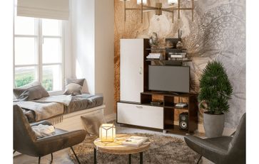 Комплект для гостиной Марта-16 гармонично сочетает открытые и закрытые зоны хранения
