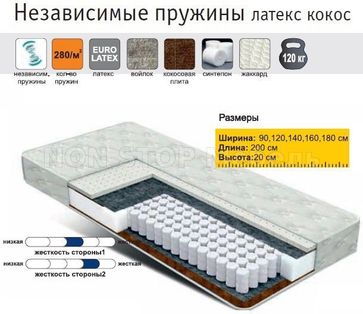 - Матрас Комфорт с независимыми пружинами + латекс + кокос 1600х2000 в каталоге Матрасы в Санкт-Петербурге;