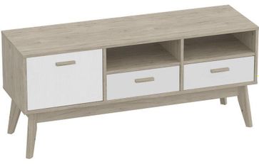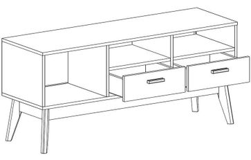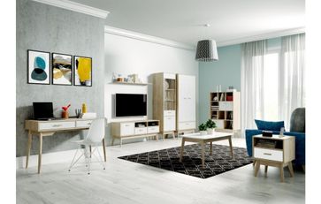 Модульная гостиная Калгари — композиция на стыке модерна и городского ретро. Модули изготовлены на каркасе из ЛДСП 16 мм в цвете дуб натуральный, фасады — МДФ 16 мм в декоре Белый матовый. Опоры изготовлены из массива березы. В составе композиции следующие модули: