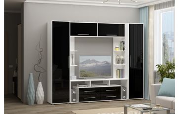 Гостиная Гармония МДФ — стильная гостиная в черно-белом цвете — беспроигрышная визитка вашего дома. Сделает интерьер динамичным и выразительным, создаст атмосферу спокойствия и умиротворения. Корпус выполнен из ЛДСП белого цвета, фасады — МДФ Черный глянец. В составе композиции: •шкаф плательный со штангой; •центральная часть с нишей под телевизор, двумя секциями за подъемными дверцами, тумбой ТВ, оборудованной 4 выдвижными ящиками, вертикально и горизонтально расположенными нишами; •шкаф бельевой с 4 полками. None Страна производства: Россия Есть доставка.