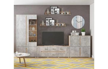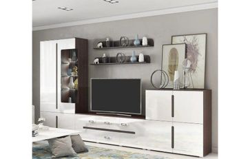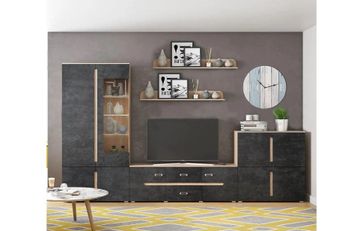 Гостиная Ким — практичное решение для современной квартиры. Четкая геометрия линий, интересные декоры — вот основные преимущества серии. Предлагаемый на фото вариант продается комплектом. Возможно дополнить комплект модулями. Корпуса модулей изготовлены из ЛДСП, фасады — МДФ. В состав комплекта включены: •Ким Тумба ТВ (1600х420х543); •Ким Шкаф с подсветкой (1000х424х2060); •Ким Тумба 4-х створчатая (1000х424х1050); •Ким Полка (1300х166х150) 2 шт. None Страна производства: Россия Есть доставка.