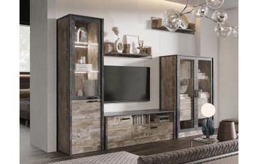 Модульная гостиная Амели — универсальная и лаконичная модульная система, не перегруженная лишними деталями, станет прекрасным оформлением любой гостиной. Материал ЛДСП. Приятная древесная текстура дуб Юкон в обрамлении брутального бетона интересно сочетается с подсвеченными стеклянными полками. В составе композиции: •пенал стекло (566х490х2016) 2 стеклянные полки с подсветкой за стеклянной дверью, полка ЛДСП за дверью из ЛДСП, •тумба ТВ (1500х492х520) ящик, ниша, секция за распашной дверью, •шкаф стекло (1066х490х1550) 2 стеклянные полки, 4 ящика, 2 ниши за 2 стеклянными дверьми, •полка (1200х176х234) — 2 шт. None Страна производства: Россия Есть доставка.