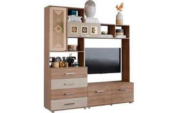 Модульная гостиная Белла — модульная система мебели для вашей гостиной в эконом разряде. Имеется центральный модуль, к которому можно добавить шкафы. Мебель изготовлена из ЛДСП, с красивым сочетанием контрастных цветов Венге / Дуб беленый или Ясеня шимо светлого и темного оттенков, на фасадах центральной секции имеется рисунок. Стильная мебель позволит разместить в порядке нужные вещи, создаст в гостиной ощущение уюта и тепла. Секция под ТВ — 1184х1010 мм. Модули, входящие в комплект как на фото: •Гостиная Белла центральная секция (2000х470х2120); •Гостиная Белла шкаф 2-хстворчатый (800х470х2120). None Страна производства: Россия Есть доставка.