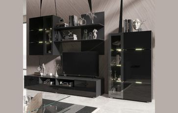 Модульная гостиная Николь — угольно-черная композиция в стиле модерн. Материл корпуса ЛДСП, фасад МДФ. В составе комплекта: •Тумба ТВ (2000 х 520х 350 мм); •Шкаф с полкой (800 х 346х 1300 мм); •Шкаф с навесной полкой (2000 х 346х 980 мм) None Страна производства: Россия Есть доставка.