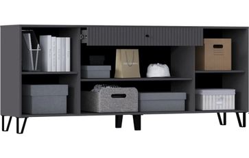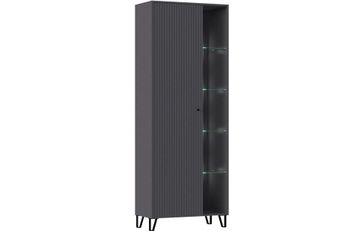 Модульная гостиная Оливия — серия мебели в стиле Лофт. Напольные элементы установлены на черные металлические опоры. Материал корпуса ЛДСП. Материал фасада МДФ с рифленой фактурой. В составе комплекта: •шкаф (836х426х2227) 4 стеклянные полки с подсветкой, отделение для одежды с выдвижной штангой и антресольной полкой; •комод (2000х426х830); •шкаф навесной малый (400х346х400) — 4 шт. Размер ниши под ТВ - 2000х1200. None Страна производства: Россия Есть доставка.