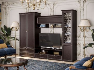 Модульная гостиная Престиж-2 — великолепное дизайнерское решение. Светлые фасады (сандал светлый) визуально увеличивают размеры пространства. Мебельная композиция, выполненная в другом цветовом решении, Венге, выглядит не менее великолепно.