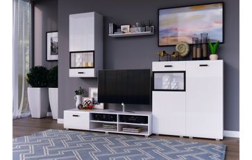 Модульная гостиная Рио — современное решение для небольшой комнаты. Гостиная выполнена на корпусе из ЛДСП, фасады — МДФ глянец. Белый декор удачно сочетается с любым интерьером и визуально увеличивает размер комнаты. В составе комплекта: •пенал навесной(550х356х1220); •полка навесная (800х150х200); •тумба под тв (1620х350х520); •шкаф (стекло) 550х356х1220); •шкаф без стекла (550х356х1220). None Есть доставка.