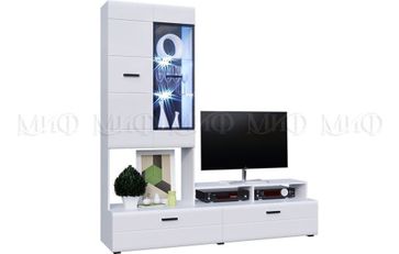 Нэнси NEW Центральная секция — министека, оборудованная тумбой ТВ с 2 ящиками и 2 нишами, шкафом с 2 створками: одной глухой, второй — стеклянной. Шкаф укомплектован полками: за глухой дверью 2 ЛДСП, за стеклянной — 2 стеклянные. Материал корпуса ЛДСП, фасад МДФ. None Страна производства: Россия Есть доставка.