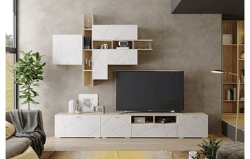 Модульная гостиная серии «Скайлайн» станет незаменимым решением для людей, живущих полной жизнью и желающих сделать свой дом не только комфортным, но и практичным. Коллекция представлена разнообразием открытых и закрытых модулей, которые можно комбинировать между собой в различных вариациях. Напольные тумбы с ящиками можно использовать не только для хранения не предназначенных для лишних глаз вещей, но и как подставку под ТВ и другую технику. Подвесные полки с дверцами дарят дополнительное пространство для хранения. Открытые полки позволяют расположить различные предметы интерьера, добавляя комнате уюта: статуэтки, вазы, картины, посуду. Благодаря современному цветовому решению, интересной структуре фасада и высокому качеству изделия, Модульная гостиная серии «Скайлайн» будет радовать Ваш взор на протяжении долгих лет.