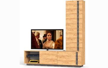 Если Ваша гостиная выполнена в урбанистическом стиле данный набор станет настоящей находкой. Выполненная под натуральный цвет и фактурой свежеспиленного дерева в сочетании серого цвета серого камня, со стеклянными вставками, гостиная освежит интерьер и добавит теплые цвета в дизайн вашей квартиры. В состав набора входит: Тумба 10.86 Шкаф комбинированный 10.05 В закрытый шкаф с полками скроет от посторонних глаз вещи. Тумба также оборудована открытой нишей со стеклянной полочкой и двумя закрытыми нишами. Закрытый шкаф устанавливается на тумбу под ТВ без цоколя. None Есть доставка.