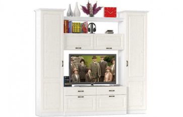 Набор для гостиной выполненный в приятной светлой цветовой гамме и колониальном стиле. Стенка включает в себя все необходимые модули для размещения телевизора, предметов интерьера и посуды, вещей и белья.