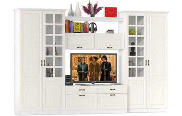 Набор для гостиной выполненный в приятной светлой цветовой гамме и колониальном стиле. Стенка включает в себя все необходимые модули для размещения телевизора, предметов интерьера и посуды, вещей и белья. Состав набора: Комплект карнизов 1000 (2 шт.) Полка Шкаф - витрина (2 шт.) Шкаф - пенал (2 шт.) Шкаф навесной Тумба Модули изготовлены из ЛДСП 16 мм, фасады выполнены из МДФ 16 мм, с кромкой из ПВХ 0,4 мм. Распашные дверки установлены на четырехшарнирные петли, выдвижные ящики на шариковых направляющих. Подъемный дверки установлены на газлифты. Ручки - металл в цвете "Старая бронза". Шкаф-пенал комплектуется с подсветкой - спот врезной. None Есть доставка.