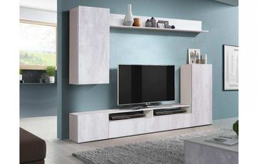 Стенка Прага-3 белый/бетон - яркое и современное готовое решение для гостиной комнаты.