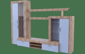 Оризона NEW Стенка — готовый комплект для гостиной, включающий широкую тумбу ТВ, высокую (3 стеклянных полки) и низкую (2 стеклянных полки) витрины, высокий (5 полок ЛДСП) и низкий (3 полки ЛДСП) пеналы, открытые полки. Материал ЛДСП. Стекло обычное. Используются направляюшие полного выдвижения None Страна производства: Россия Есть доставка.