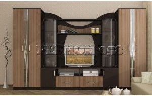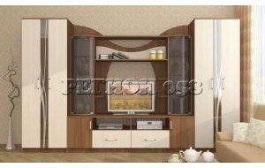 Гостиная Гамма-15. Наполнение: в левом шкафу — штанга + верхняя и нижняя полки, в правом шкафу — 4 полки (5 секций под вещи). Ширина каждого шкафа 700 мм. Глубина надставки средней секции 300 мм. Средняя секция снабжена двумя пеналами под посуду со стеклянными тонированными гнутыми створками и ящиками на роликовых направляющих. None Страна производства: Россия Есть доставка.