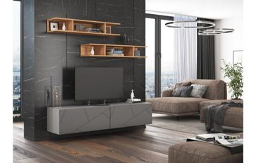 Модульная гостиная Гранж — яркий представитель молодого интерьерного стиля хай-тек, который славится своей лаконичность, функциональностью и изящной простотой, в которой нет места излишнему декору и перегруженности. Четырнадцать модулей в оригинальной цветовой гамме позволяют со вкусом оформить любое пространство, подчеркнув индивидуальность вашего интерьера. Преимущества модульной гостиной Гранж: • Широкий модульный ряд; • Каждый элемент гостиной Гранж продуман до мелочей и максимально функционален; • Оригинальная холодная цветовая гамма ящиков, шкафов и тумб великолепно смотрится в контрасте с навесными полками, оформленными в цвете Дуб крафт золотой; • Изящные накладные МДФ-фасады тумб украшены с помощью абстрактного узора, сделанного с помощью фрезеровки; • Створки фасадов выполнены без ручек, происходит при помощи отталкивателя путем нажатия на фасад (система PUSH-TO-OPEN); • 8 вариантов исполнения навесной полки ПН-001 и 16 вариантов исполнения стеллажа СЖ-001. Материал корпуса ЛДСП.