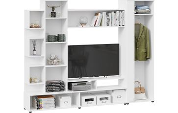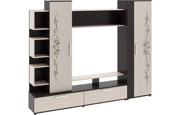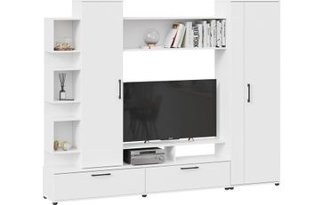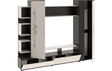 шкаф для одежды со выдвижной штангой; тумбу ТВ с 2 секциями с откидной дверцей и 2 нишами; пенал с полками; секцию с открытыми полками. None Есть доставка.