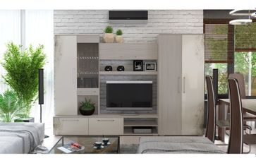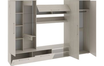 двухдверный шкаф для одежды со штангой; тумбу ТВ с 2 выдвижными ящиками и 2 нишами; антресольную секцию с откидной дверцей; витрину с тонированным стеклом (2 полки + 1 выдвижной ящик); пенал с полками. None Страна производства: Россия Есть доставка.