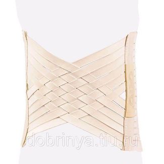 Передняя часть выполнена из переплетения тонких эластичных ремней, которые повторяют ход мышечных волокон передней брюшной стенки, не затрудняют дыхание и работу кишечника.