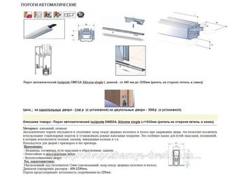 Система автоматически выдвигаемого порога. Автоматические пороги опускаются и уплотняют зазор между дверным полотном и полом при закрывании двери мин. партия товара 1 шт. Возможен самовывоз. Есть доставка.