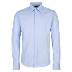 ---Размер-44-Размер производителя-44-Категория-Рубашки -Вид товара-Рубашки с длинным рукавом-Сезон-демисезон-Основной цвет-голубой-Страна производства-Румыния-Длина-средняя-Стиль-деловой-Материал верха-хлопок-Материал верха-100% хлопок-Размер упаковки (ДхШхВ), см-40 x 30 x 2 см, вес 0.3 кг-Производитель-Valentino Spa/Via Turati 16/113-Страна производства-РУМЫНИЯ-Описaние-Мужская рубашка делового стиля на пуговицах. Модель имеет полуприлегающий силуэт, узор - полоска, втачной рукав, воротник отложной.- None