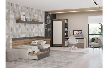Коллекция мебели для подростковой комнаты Гринвич - универсальное решение для организации пространства, выполненное в современном стиле. Мебель исполнена в модном цветовом сочетании и декорирована геометрическим рисунком. Универсальная сборка - визитная карточка коллекции, которая позволяет грамотно и рационально использовать площадь помещения. Кроме того, преимуществами коллекции выступают: