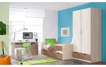 Модульная детская Бриз — недорогой практичный вариант для комнаты ребёнка. В основной комплект входят: Шкаф 2 ств. Бриз (90х53х202) штанга, 2 полки, 2 ящика; Стол письменный Бриз (110х60х75) тумба с 3-мя ящиками и нишей, ниша под столешницей; Кровать Бриз-2 80х190 (86,2х194,2х70), основание спального места настил ЛДСП, 2 выкатных ящика. Матрас приобретается отдельно. Материал корпуса ЛДСП, фасадов МДФ, фрезеровка Волна. None Есть доставка.