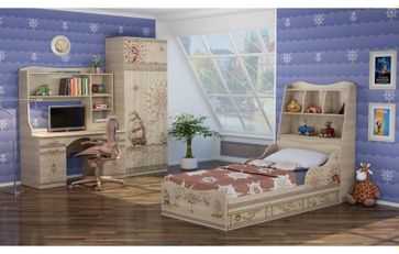 Модульная детская Квест — прекрасный выбор для маленького ребенка. Удобная и красивая композиция понравится и взрослым и детям, обеспечит ребенку уют и комфорт. Вся мебель изготовлена из качественного ЛДСП толщиной 16 мм в декоре Сонома светлый с интересным постером. В комплект мебели входят:
