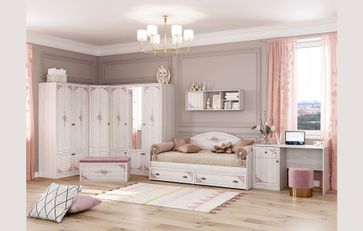 Шкаф 2-дверный Эльза (95х52,5х197,5); Шкаф 3-дверный Эльза (141х52,5х197,5); Шкаф угловой Эльза (79х79х197,5); Сундук Эльза (92х50х44); Кровать Эльза (204,5х96,5х116); Стол письменный Эльза (120х54х76); Полка навесная Эльза (120х25х40).