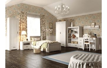 шкаф однодверный (602х410х1970); тумба прикроватная (602х410х510); кровать Прованс 90 (970х2071х850); шкаф двухдверный (1070х590х1970); стеллаж (1070х410х1520); стол письменный (1270х600х755); полка навесная (1070х200х200).