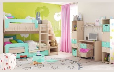 Модульная детская Юниор-1 – практичная мебель для детской комнаты. Оптимизирует пространство, формирует комфортную среду для занятий и игр. Выполнена в приятных спокойных тонах. Правильный выбор заботливых родителей. Модули входящие в комплект: •Двухъярусная кровать Юниор-1 (2034х1670х987); •Защитный бортик для нижнего спального места (1000х295); •Лестница (482х952х1616); •Стеллаж (360х386х1570) — 2 шт.; •Письменный стол (900х520х750); •Тумба (360х370х650); •Полка (990х116х116).Основания спальных мест — настилы ДСП. Матрасы приобретаются дополнительно. None Страна производства: Россия Есть доставка.