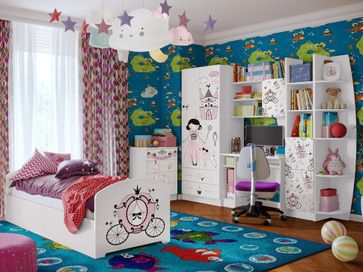 Модульная детская Юниор-2 Принцесса — набор мебели Белого цвета, с фасадами, декорированными рисунками. Материал корпуса и фасадов — ЛДСП. В составе композиции: •стенка Юниор-2 (2550х520х2000); •комод Юниор-2 (600х430х820); •кровать Юниор-2 (840х2030х650) основание кровати — настилы ДСП. Матрас приобретается дополнительно. None Страна производства: Россия Есть доставка.