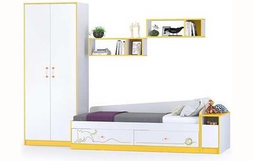 Детская Альфа 11 белый/серый/солнечный свет предназначена для детской комнаты. Исполнение в комбинированной расцветке. Состав комплекта: Альфа Кровать 11.21 Альфа Полка 09.129 (2 шт.) Альфа Тумба 13.53 Альфа Шкаф 13.42 Спальное место 800х1900 мм. Основание в комплекте, матрас приобретается отдельно. None Есть доставка.