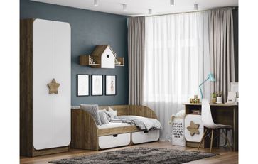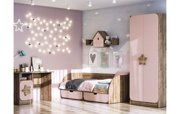 Детская мебельная коллекция Колибри RAUS – совершенно новый взгляд на то, как должна выглядеть современная комната ребенка. Мягкие оттенки дерева в сочетании с пастельными розовыми или голубыми, а также белыми тонами фасадов – пожалуй, лучшее цветовое решение там, где важно создать атмосферу уюта, тепла и защищенности. В этой детской модульной программе все необычно. Оригинальные ручки для открывания дверей в виде звезд одновременно выполняют роль декоративного элемента. Встроенные в мебель петли позволяют легко открывать дверцы и в то же время создают дополнительную безопасность для малышей. Отличительный элемент дизайна – настенные полки, стилизованные под скворечник, и округлые формы фасадов. При производстве серии использованы качественные ЛДСП и МДФ. В составе комплекта: •Шкаф многофункциональный (850х516х2210) 4 полки и штанга в комплекте, •кровать (2032х950х710) спальное место 90х200 см, в основании спального места настил ЛДСП, 2 ящика, •стол письменный (1100х600х800) 2 ящика, ниша, •полка декоративная (1056х290х462) скворечник с распашной дверцей. Матрас приобретается дополнительно. None Страна производства: Россия Есть доставка.