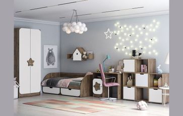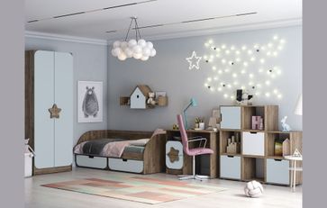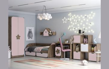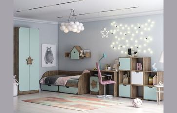 Детская мебельная коллекция Колибри RAUS – совершенно новый взгляд на то, как должна выглядеть современная комната ребенка. Мягкие оттенки дерева в сочетании с пастельными розовыми или голубыми, а также белыми тонами фасадов – пожалуй, лучшее цветовое решение там, где важно создать атмосферу уюта, тепла и защищенности. В этой детской модульной программе все необычно. Оригинальные ручки для открывания дверей в виде звезд одновременно выполняют роль декоративного элемента. Встроенные в мебель петли позволяют легко открывать дверцы и в то же время создают дополнительную безопасность для малышей. Отличительный элемент дизайна – настенные полки, стилизованные под скворечник, и округлые формы фасадов. При производстве серии использованы качественные ЛДСП и МДФ. В составе комплекта: •Шкаф многофункциональный (850х516х2210) 4 полки и штанга в комплекте, •кровать (2032х950х710) спальное место 90х200 см, в основании спального места настил ЛДСП, 2 ящика, •стол письменный (1100х600х800) 2 ящика, ниша, •полка декоративная (1056х290х462) скворечник с распашной дверцей, •стеллаж с ящиком с опорами (420х400х420) — 2 шт., •стеллаж открытый с опорами (420х400х420), •стеллаж открытый (420х400х400) — 3 шт., •стеллаж с ящиком (420х400х400), •стеллаж со створкой (420х400х400). Матрас приобретается дополнительно. None Страна производства: Россия Есть доставка.