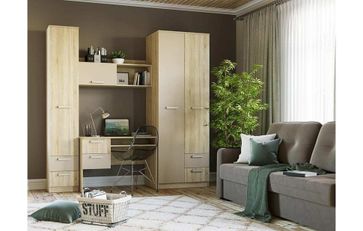 Комплект включает комфортный рабочий стол и систему шкафов для хранения всего необходимого.