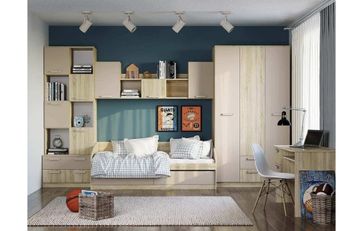 Комплект предлагает ученическую зону, спальное место и систему хранения вещей и одежды.