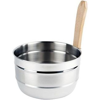 Элегантная банная шайка из высококачественной нержавеющей стали. На поверхности - декоративный рисунок. Ручка - из обработанного маслом бука.