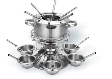 Комплектация: Кастрюля, л - 2 Тарелочки, шт - 6 Вилочки, шт - 6 Ложки, шт - 6 Кольцо для вилочек, шт - 1 Горелка, шт - 1 Вращающийся держатель для фондю, шт - 1
