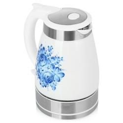 ---Тип-Электрочайник-Цвет-Серебристый, Рисунок, Белый, Комбинированный-Объем, л-1.7-Тип нагревательного элемента-Скрытый нагревательный элемент-Внутреннее покрытие нагревательного элемента-Нержавеющая сталь-Фильтр-Есть-Мощность, Вт-2000-Материал корпуса-Комбинированный, Керамика-Отсек для шнура-Есть-Индикация уровня воды-Есть-Защита от включения без воды-Есть-Автоматическое отключение-Есть, Есть-Особенности-Подставка с вращением чайника на 360°-Размеры (В x Ш x Г), мм-23.5 x 16 x 16 см-Вес-1.33-Размер упаковки (ВхШхД), см-21.5 x 21.5 x 29 см, вес 2 кг- None