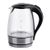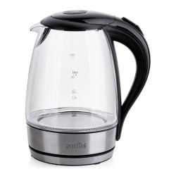---Описaние-Электрический чайник с корпусом из экологически чистого стекла, функцией автоматического отключения и круговой светодиодной подсветкой корпуса прибора.-Тип-Электрочайник-Цвет-Серебристый,Черный-Объем, л-1.7-Тип нагревательного элемента-Скрытый нагревательный элемент-Внутреннее покрытие нагревательного элемента-Нержавеющая сталь-Фильтр-Есть-Мощность, Вт-2200-Материал корпуса-Нержавеющая сталь,Пластик/Стекло-Отсек для шнура-Есть-Индикация--Индикация уровня воды-Есть-Система защиты--Защита от включения без воды-Есть-Автоматическое отключение-Есть,Есть-Дополнительные параметры--Особенности-Подставка с вращением чайника на 360 градусов; Глянцевое покрытие.-Габариты--Размеры (В x Ш x Г), см-25 x 15 x 15 см-Вес, кг-1.06-Упаковка--Размер упаковки (ВхШхД), см-20 x 18 x 26 см, вес 1.2 кг- None