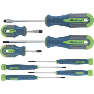 Предназначен для монтажа и демонтажа резьбовых соединений.Стержни отверток изготовленыиз качественной хромованадиевой сталис хромовым покрытием, устойчивымк воздействию коррозии.Рабочие концы намагничены, имеют фосфатированное покрытие. В набор входят отвертки для точных работ с крутящимся затыльником.Твердость рабочейчасти 50-52 HRC.Отвертки:PH2 x 100 ммSL6 x 100 ммSL6 x 38 ммPH2 x 38 ммМини-отвертки:PH0 x 40 ммPH000 x 40 ммSL3.0 x 40 ммSL2.0 x 40 мм None Страна производства: Китай