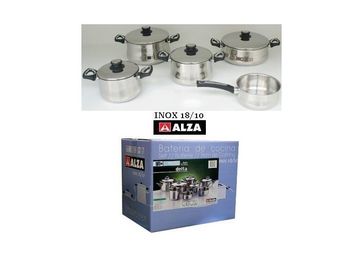 Материал: Нержавеющая сталь 18/10 . Ручки: бакелит Дно: Сэндвич Termodifusor трехслойное (Дно из нержавеющей стали 18/10 Нержавеющая сталь + 17% Cr). Крышканержавеющей стали, бакелит . Можно мыть в посудомоечной машине Посуда подходит для всех типов плит: газ, электричество, галогенные, стеклокерамических и индукционных