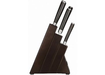 Высококачественная немецкая нержавеющая сталь X50CrMоV15 с повышенным содержанием углерода, используемая для изготовления профессиональных ножей, позволяющая длительно сохранять заточку. Двухсторонняя заточка лезвия. Твердость по шкале Роквелла 56-57 HRC Цельнокованый нож (клинок, шейка, хвостовик) Рукоятка - сталь/ABS пластик. Удобная стильная подставка из бука, покрытая лаком. Буклет с инструкциями по украшению блюд. Упаковка - подарочная коробка. Продаем в кредит. Более 15 видов оплаты, WM, ЯД. Можно купить без предварительного заказа. Возможен самовывоз. Есть доставка. Доставка: 350.0RUR
